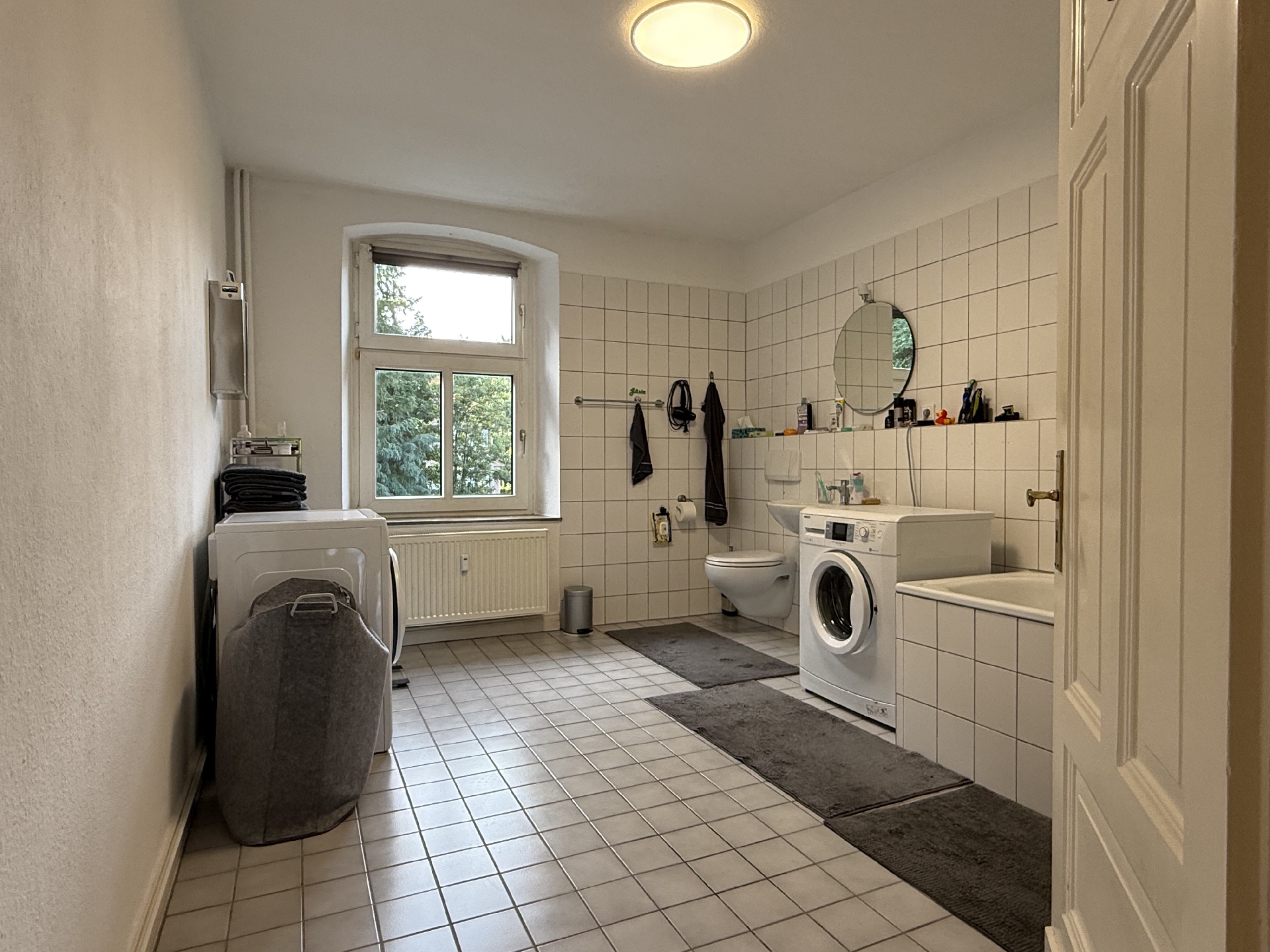 Die Gesamtwohnfläche beträgt ca. 122 m², verteilt auf zwei Wohnungen – eine davon ist seit dem 01.10.2012 vermietet, die zweite steht leer und kann kurzfristig bezogen oder neu vermietet werden.