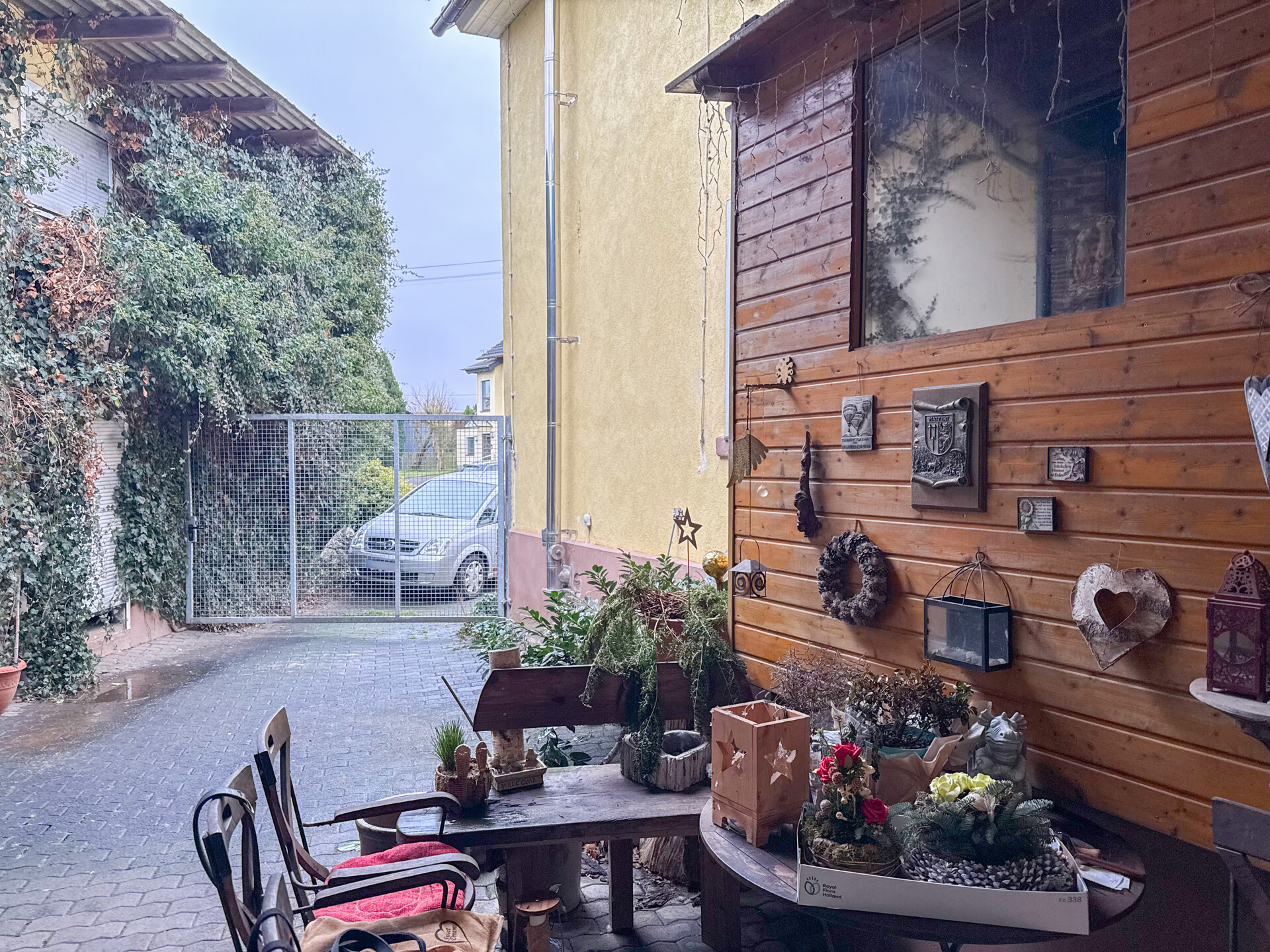 Die Zufahrt und die Hoffläche wurden mit Pflastersteinen befestigt.