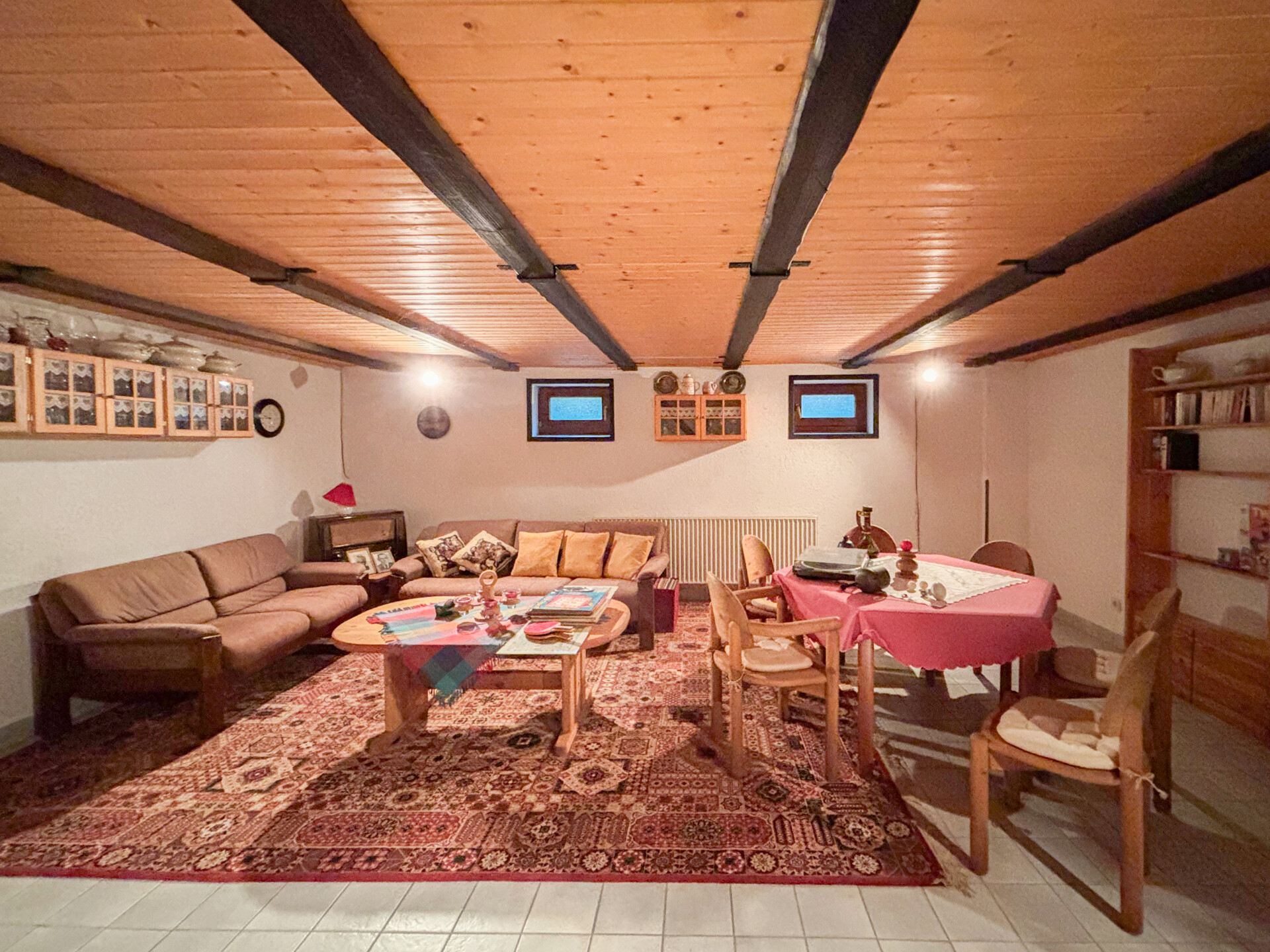 • Dieses Einfamilienhaus in attraktiver Bungalow-Bauweise bietet ca. 121 m² Wohnfläche und ein großzügiges Grundstück von rund 995 m². Der durchdachte Grundriss umfasst 4 Zimmer, darunter 3 Schlafzimmer sowie einen offenen, lichtdurchfluteten Wohn- und Essbereich mit Zugang zur Terrasse – ideal zum Entspannen und Wohlfühlen. Zwei Badezimmer sorgen für zusätzlichen Komfort. Das Haus ist vollständig unterkellert. Im Untergeschoss stehen ein Hobbyraum, ein Abstellraum, sowie ein großzügiger Partyraum mit eigener Bar und ein Hobbyraum zur Verfügung – perfekt für Feiern, Hobbys oder als zusätzlicher Freizeitbereich. Zudem verfügt die Immobilie über zwei Garagen und einen begehbaren Stauraum im Dachbereich. Als Varidomo Massiv-Fertighaus errichtet, überzeugt das Objekt durch seine solide Bauweise und hochwertige Materialien – ein ideales Zuhause für alle, die Qualität und Wohnkomfort schätzen.