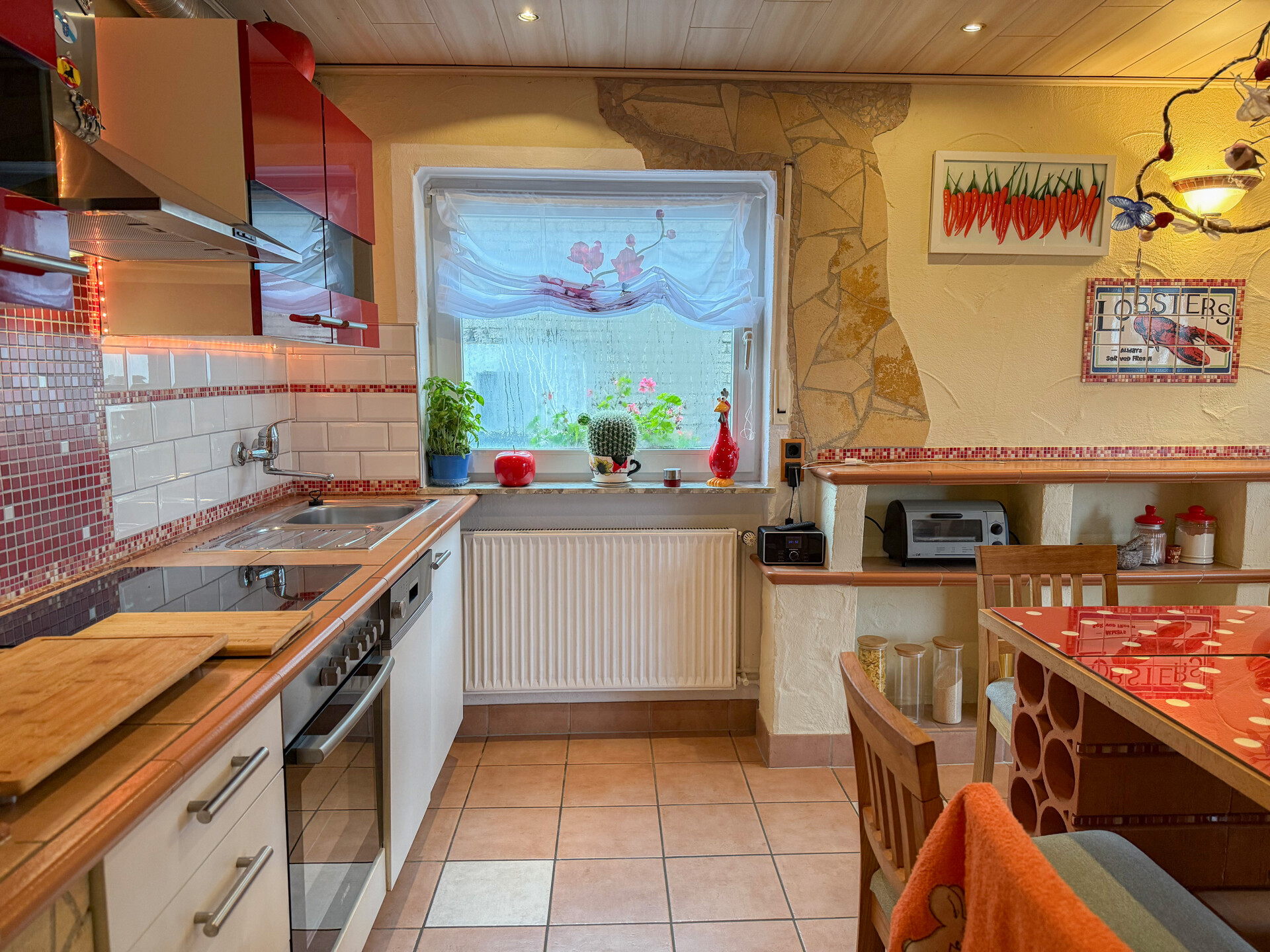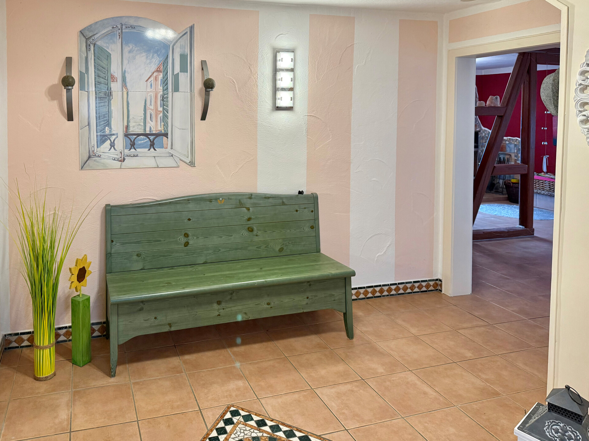 - Bodenbelag: Fliesen, Teppich, Laminat