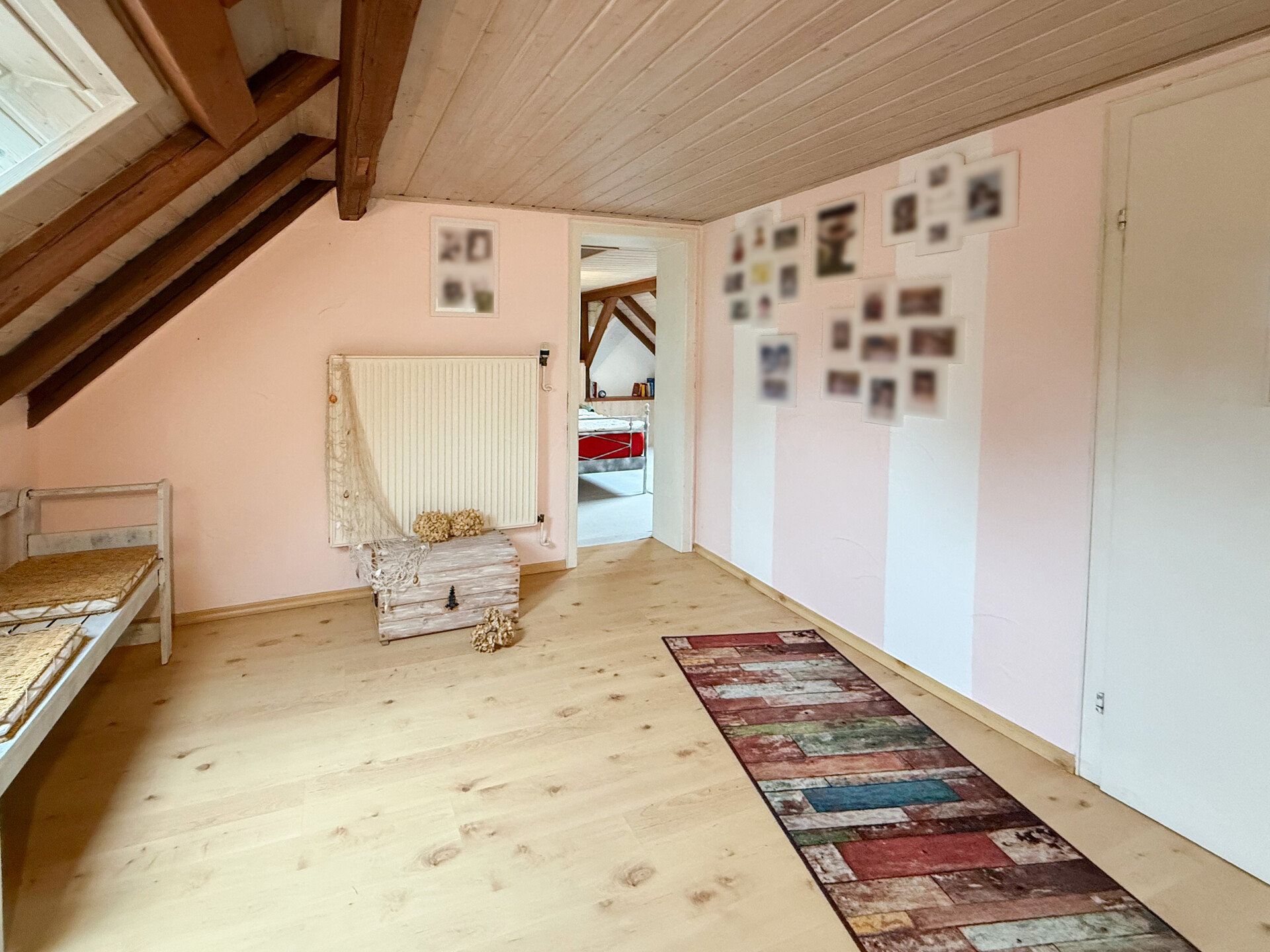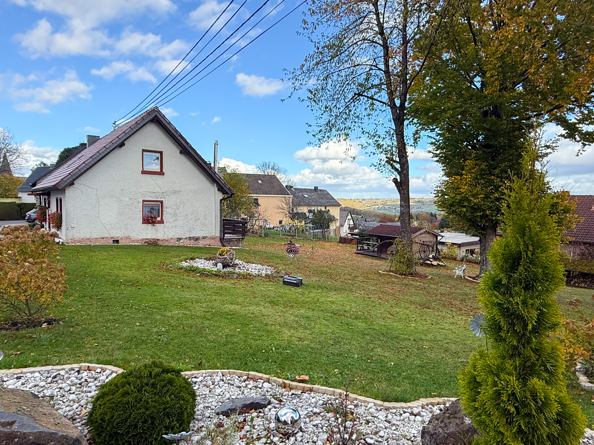 Dieses charmante Einfamilienhaus aus ca. 1914 befindet sich in herrlicher Höhenlage auf einem großzügigen Grundstück von rund 1.219 m², das sich bei Bedarf auch in einen separaten Bauplatz aufteilen ließe. Das Haus präsentiert sich gepflegt und bietet eine Wohnfläche von etwa 132,41 m², die sich über Erd- und Dachgeschoss erstreckt. Im Erdgeschoss empfängt Sie ein großer Wohnbereich mit Kaminofen, von dem aus Sie sowohl den Balkon als auch den Garten erreichen. Das Esszimmer liegt direkt neben der Küche, welche ebenfalls über einen Zugang zum Balkon verfügt. Ein helles Tageslichtbad mit Wanne und Dusche sowie ein weiteres Zimmer, vervollständigen diese Ebene. Die Raumaufteilung ermöglicht komfortables Wohnen auf einer Ebene und eignet sich damit auch hervorragend für das Wohnen im Alter. Im Dachgeschoss stehen zwei Schlafzimmer und ein kleiner Raum, der sich als Büro oder Abstellfläche eignet, zur Verfügung. Der Spitzboden bietet zusätzlichen Stauraum. Eine Einzelgarage mit elektrischem Tor sowie ein Kriechkellerraum sind ebenfalls vorhanden. Das gepflegte Grundstück mit Baumbestand, Gartenhäuschen und beeindruckendem Fernblick macht dieses Zuhause besonders attraktiv. Der Ort selbst besitzt eine eigene Kindertagesstätte und eine Grundschule – ideal für Familien.