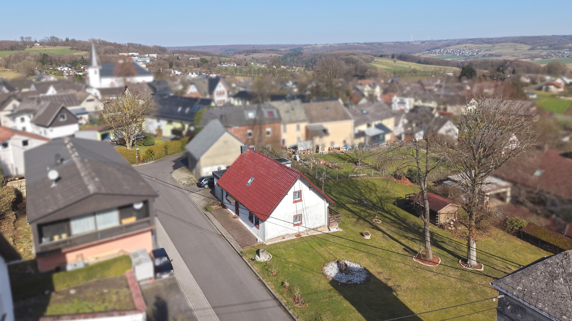 Die Immobilie liegt in einem ruhigen Mischgebiet einer Westerwaldgemeinde nahe Hachenburg. Kindergarten und Grundschule befinden sich direkt im Ort und sind bequem zu Fuß erreichbar. In Hachenburg, etwa fünf Kilometer entfernt, stehen zahlreiche Einkaufsmöglichkeiten, Ärzte, Apotheken sowie weiterführende Schulen und vielfältige Freizeitangebote zur Verfügung. Zusätzlich bietet das nahegelegene Nistertal mit einem Rewe-Markt eine praktische Einkaufsmöglichkeit für den täglichen Bedarf. Eine regelmäßige Busverbindung sorgt für eine gute Erreichbarkeit der umliegenden Orte. Umgeben von Wäldern, Wiesen und sanften Hügeln bietet die Lage eine naturnahe, zugleich gut angebundene Wohnumgebung – ideal für Familien, Berufstätige und Naturliebhaber.