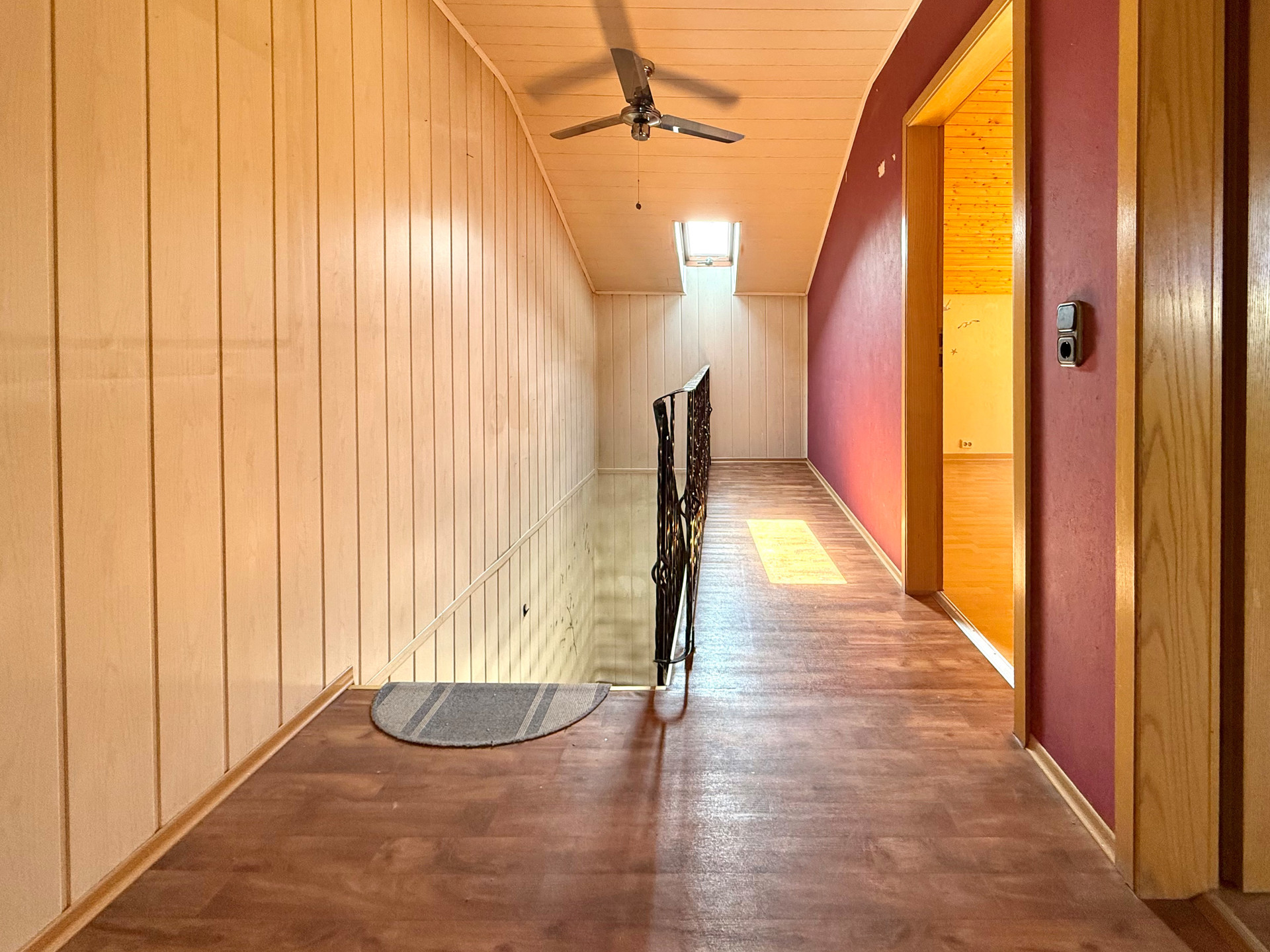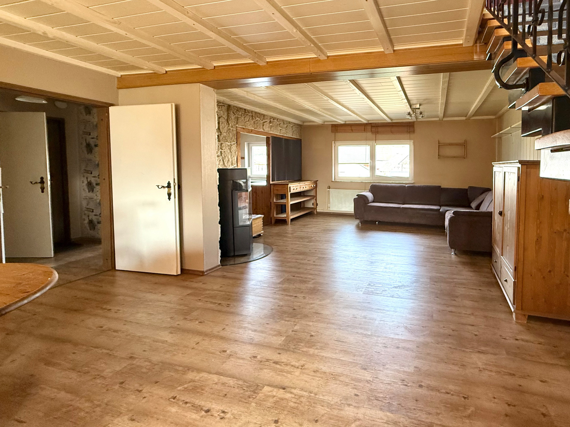 • Das ehem. Bauernhaus wurde um ca. 1920 auf einem rd. 425 m² großen Grundstück errichtet und später um weiteren Wohnraum ergänzt. Heute bietet es zwei potenzielle Wohneinheiten, die aktuell miteinander verbunden sind, aber mit entsprechenden Umbaumaßnahmen separat nutzbar wären – Ideal für einen Mehgenerationenhaushalt oder zum Wohnen und/oder Vermieten. Der rechte, ursprüngliche Hausteil befindet sich in renovierungsbedürftigem Zustand und stellt auf ca. 88 m² Wohnfläche einen Wohn-/Essbereich, eine Küche, ein Bad sowie ein Schlafzimmer zur Verfügung. Der linke Teil besitzt eine Fläche von rund 104 m², ist gepflegt und sofort beziehbar. Diese Einheit besitzt 2 Schlafzimmer, ein Duschbad, eine Ankleide, einen geräumigen Wohn-/Essbereich mit angrenzendem Wintergarten, eine Küche samt EBK sowie zwei Abstellräume. Das pflegeleichte Grundstück bietet eine große Terrasse im hinteren Bereich sowie ein Gartenhaus. Zwei separate Stromzähler sind vorhanden. Der linke Teil ist über das gemeinsame Treppenhaus im Obergeschoss oder über den Wintergarten zugänglich. Das Haus ist teilunterkellert – im Ursprungsteil befindet sich ein Bruchsteinkeller mit drei Nutzräumen. Als Parkmöglichkeit stehen zwei Garagen und 1-2 Stellplätze vor dem Objekt bereit.