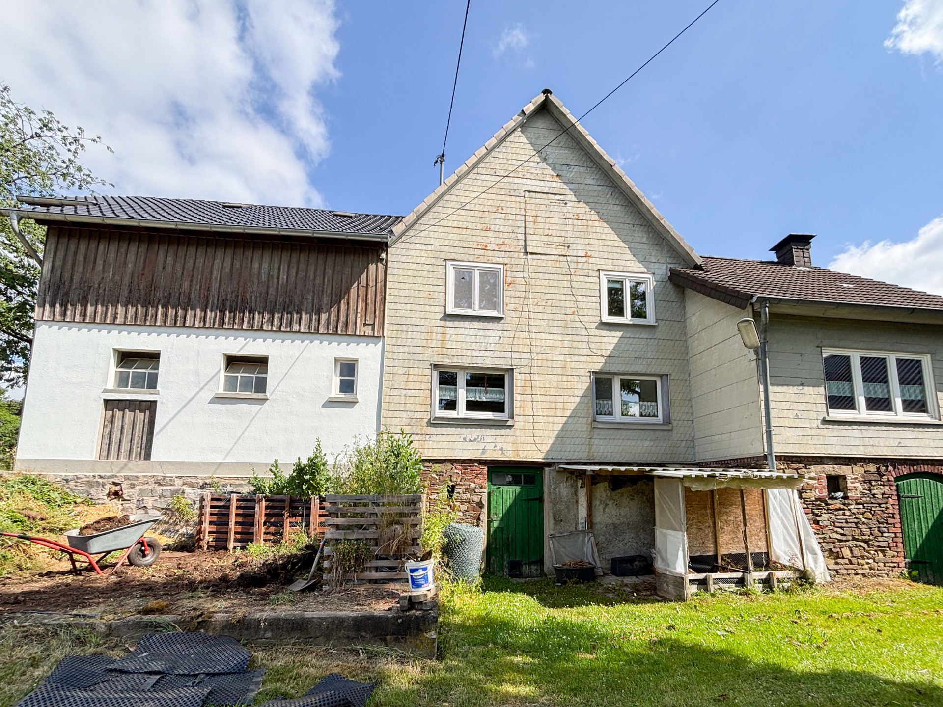 Dieses charmante Einfamilienhaus, ein ehemaliger Bauernhof aus dem 19. Jahrhundert, bietet eine seltene Gelegenheit für alle, die ein historisches Juwel liebevoll sanieren und mit neuem Leben füllen möchten. Auf einem großzügigen Grundstück von ca. 2.788 m², eingebettet in die idyllische Landschaft, können Sie sich Ihre Wohnträume erfüllen. Die Immobilie hat eine Wohnfläche von ca. 132 m², welche sich auf das Erd- und Obergeschoss verteilt. Im Erdgeschoss befinden sich drei Zimmer, zwei Bäder, eine großzügige Küche sowie ein direkter Zugang zum Keller und Stall. Das Obergeschoss umfasst drei weitere Zimmer und ein Badezimmer. Die Beheizung erfolgt wahlweise über einen Kamin oder die Gas-Zentralheizung. Im Außenbereich erwartet Sie ein weitläufiger Garten mit zahlreichen Obstbäumen, eine große Garage, zwei Scheunen, einen Stall, welche Tierhaltung ermöglicht, eine Jauchegrube sowie ein eigener Brunnen. Die ruhige Ortsrandlage des Hauses, umgeben von der unberührten Natur, verleiht diesem Anwesen eine einzigartige Atmosphäre der Entspannung und Erholung. Zusätzlich besteht die Möglichkeit, Wiesengrundstücke mit einer Gesamtfläche von ca. 5,3 ha zu erwerben – ideal für Naturliebhaber, Tierhaltung oder weitere Nutzungsmöglichkeiten.