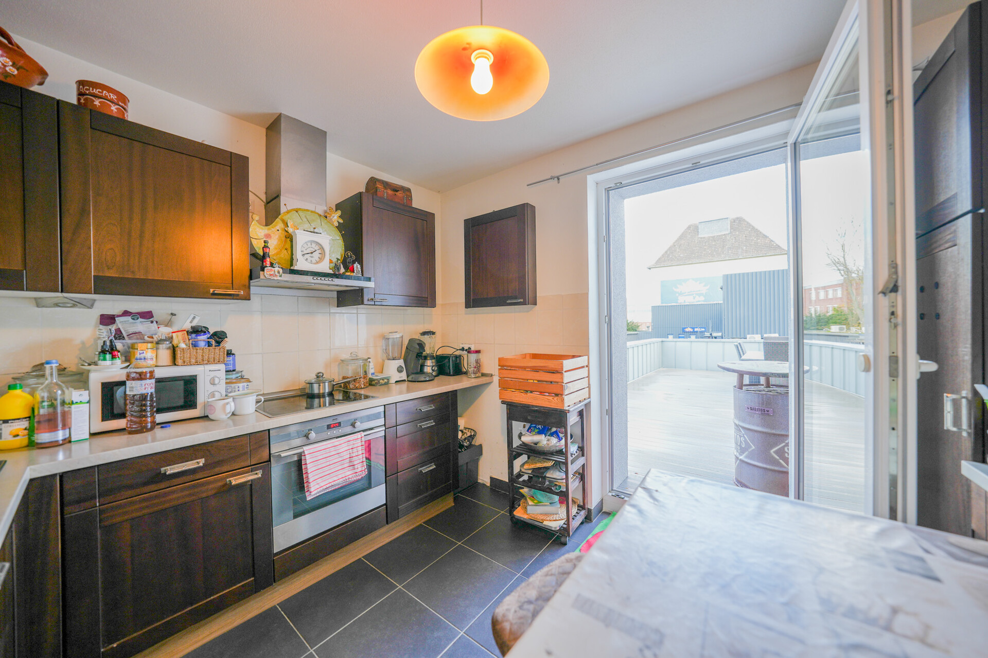 Voll ausgestattete Küche mit direktem Zugang zur Dachterrasse – perfekt für entspannte Momente im Freien