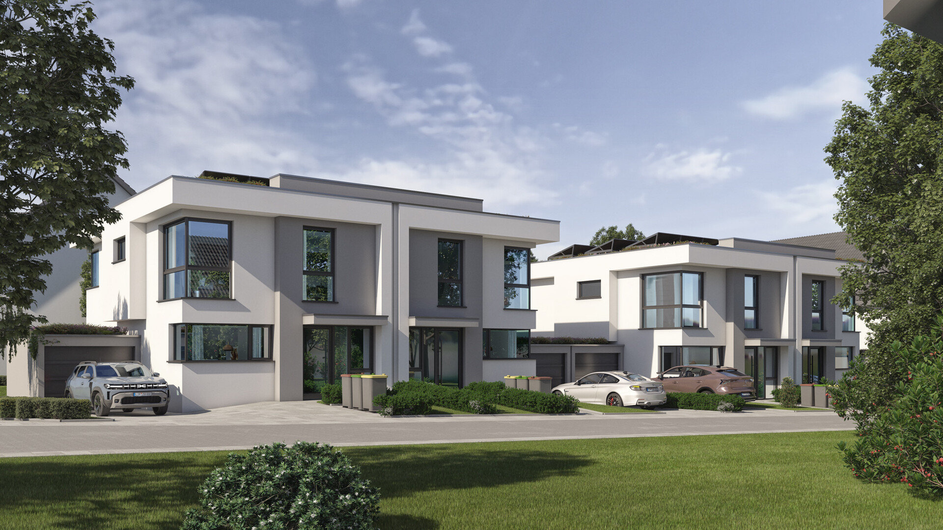 Die Doppelhaushälften verfügen über 6 großzügige Zimmer, darunter helle Wohn- und Schlafräume, 2 moderne Bäder sowie ein zusätzliches Gäste-WC. Die durchdachte Grundrissgestaltung ermöglicht komfortables Wohnen für Familien ebenso wie für anspruchsvolle Paare oder Homeoffice-Nutzer.