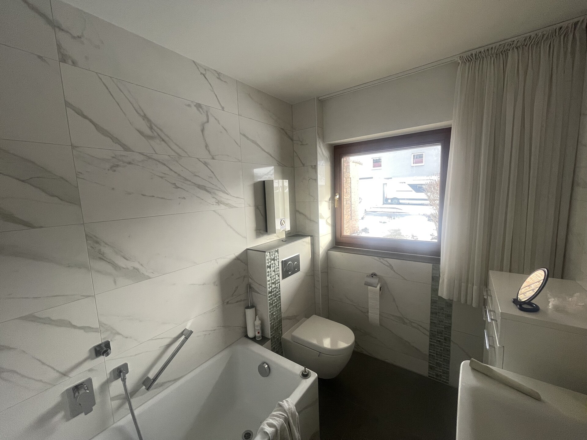 Das großzügige Wohnzimmer bildet das Herzstück des Hauses und wird durch ein großes Fenster sowie Balkontüren lichtdurchflutet. Drei gut geschnittene Schlafzimmer sowie ein zusätzliches, kleineres Schlafzimmer stehen zur Verfügung. Zwei Badezimmer, jeweils eines auf jeder Etage, bieten hohen Wohnkomfort.