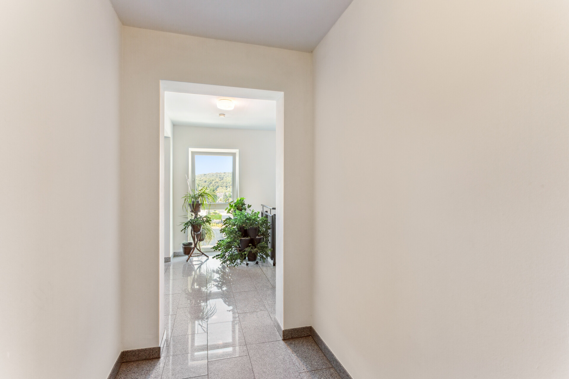 Zur Ausstattung zählen eine gasbetriebene Zentralheizung, moderne Kunststofffenster mit guter Wärmedämmung, repräsentative Treppenhäuser mit Granitbelag, eine Aufzugsanlage in beiden Gebäuden sowie Balkone oder Terrassen, die jeder Wohneinheit zugeordnet sind. Darüber hinaus stehen großzügige Parkmöglichkeiten in der Tiefgarage sowie separate Kellerräume zur Verfügung. Die gesamte Mietfläche verteilt sich auf die insgesamt 18 Wohneinheiten des Ensembles.
