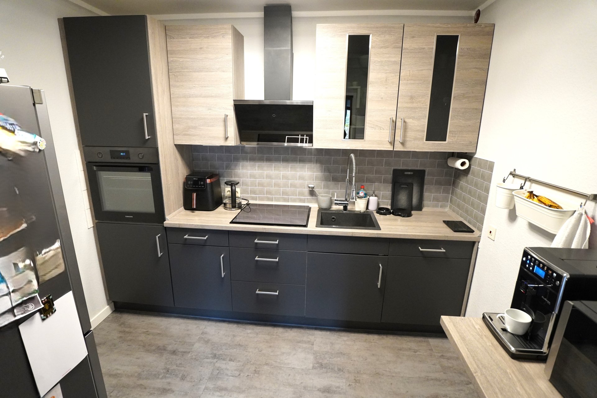 Bodenbeläge: Eingangsdiele, Wohnbereich, Küche undBadezimmer moderner Klick-Vinylboden, Schlafzimmer Laminat