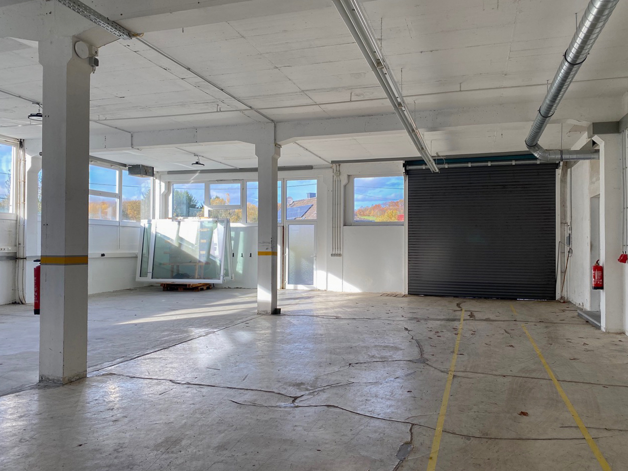 Die Halle verfügt über eine gute Belichtung und ist für verschiedene Nutzungsarten geeignet – von Produktion über Montage bis hin zur Lagerhaltung.