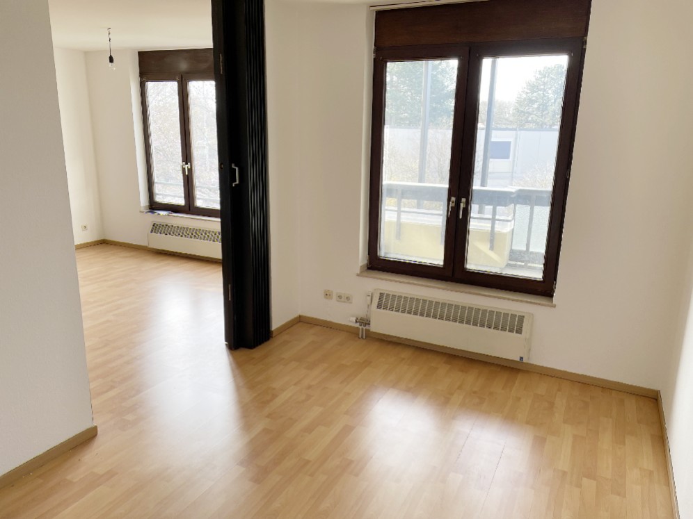 • Die vermietete Wohnung befindet sich im 1. Obergeschoss und ist bequem mit dem Lift zu erreichen. Von der Eingangsdiele gelangt man sowohl in das innenliegende Wannenbad, als auch in den großzügigen, hellen Wohnbereich. Durch eine geschickte Wandanordnung wurde hier, trotz der insgesamt offenen Gestaltung, ein optisch abgetrennter Schlafbereich geschaffen.