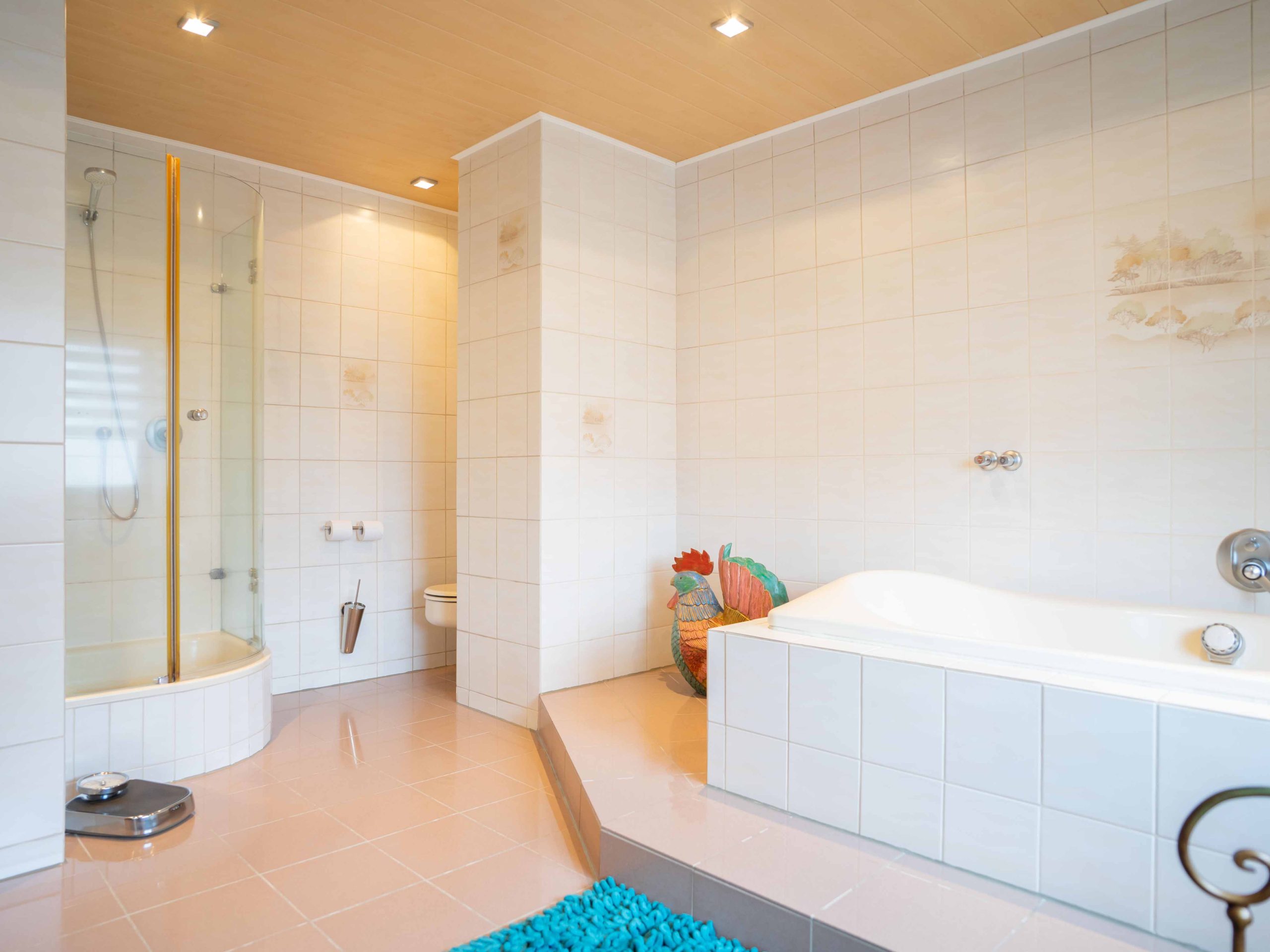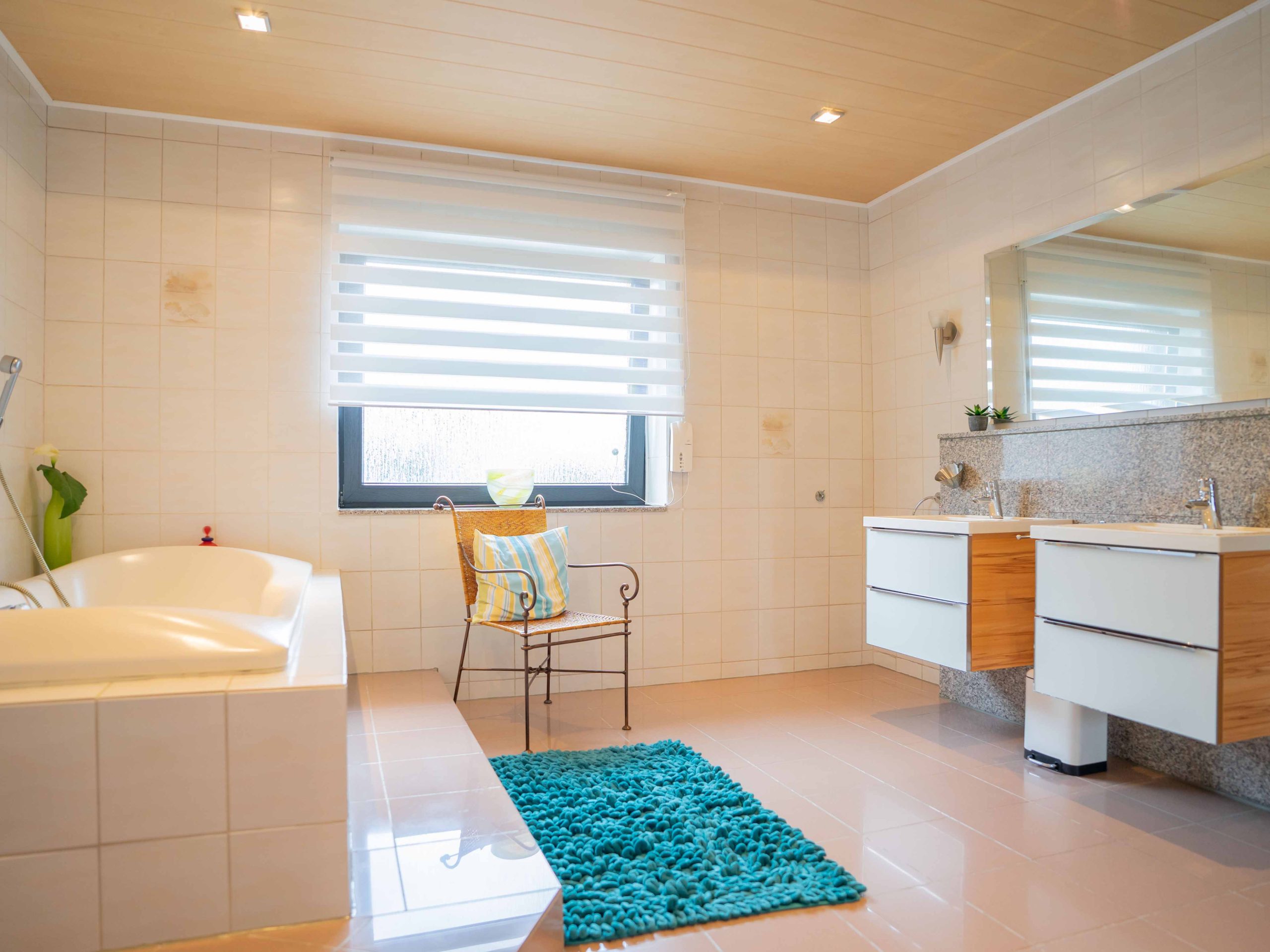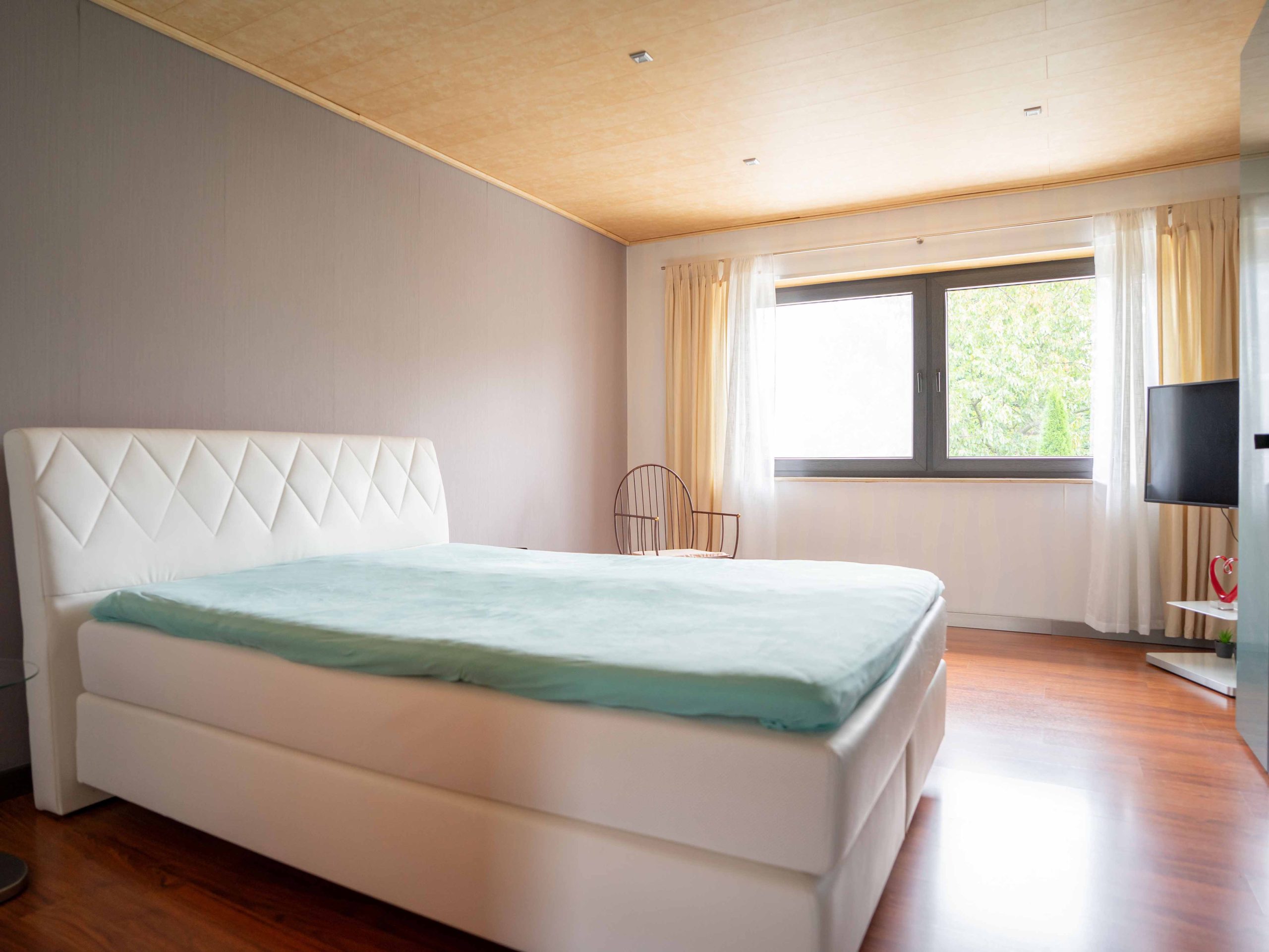Im Obergeschoss des Hauses erwarten Sie drei weitere Räume. Ein großes Schlafzimmer, ein geräumiges Kinderzimmer und ein weiteres kleines Gäste-/ Kinder-/ oder Arbeitszimmer. Im Jahr 1998 wurde das große Kinderzimmer – durch die Integration der Loggia – weiter vergrößert. Das geräumige Badezimmer bietet eine Wanne sowie eine Dusche und verfügt über ein Fenster.