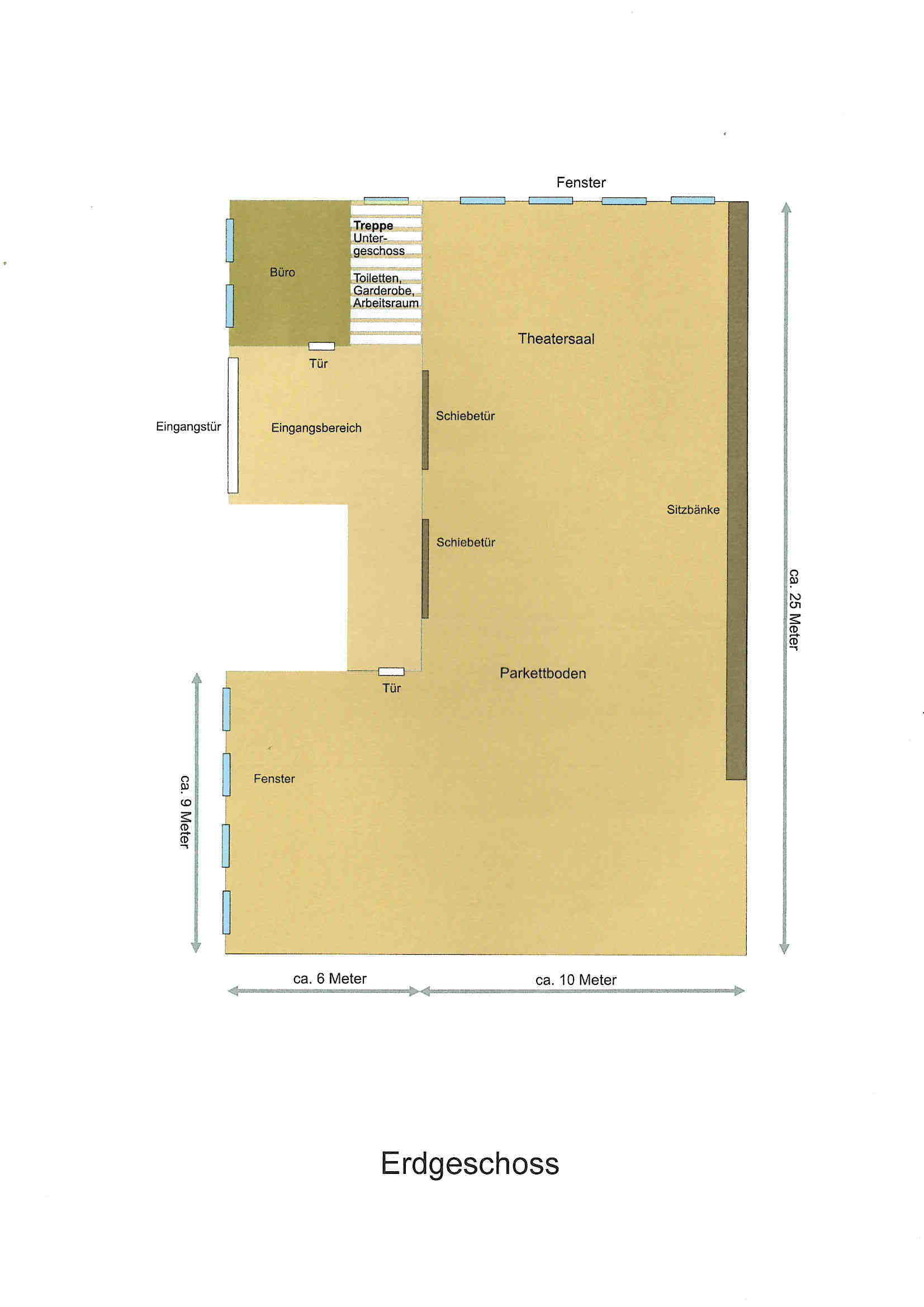 Wir bieten Ihnen eine interessante Immobilie mit vielseitigen Nutzungsmöglichkeiten! Ehemals eine etablierte Tanzschule und zuletzt als Theaterfläche genutzt. Die Fläche mit insgesamt ca. 469 m² befindet sich im Zentrum der Stadt, zentral und ruhig gelegen. Der Eingangsbereich führt Sie direkt in den großen Saal / Raum. Dieser bietet Ihnen Möglichkeiten zur Nutzung z.B. für Veranstaltungen, Kurse, Proben, Ausstellungen, usw. Der Parkettboden bietet ein ansprechendes Ambiente. Im Untergeschoss befindet sich ein weitere großer Raum, welcher zurzeit als Garderobe und Thekenbereich genutzt wird. Desweitern sind dort die gepflegten Damen- und Herren-WCs zu finden. Die Immobilie könnte weiterhin als kleines Theater oder als Begegnungsstätte für Kurse und Workshops z.B. Tanz-, Musik- oder Kunstkurse geführt werden. Die flexible Gestaltung ermöglicht es, die Räume an verschiedene Bedürfnisse anzupassen, was für Sie als Mieter attraktiv ist.