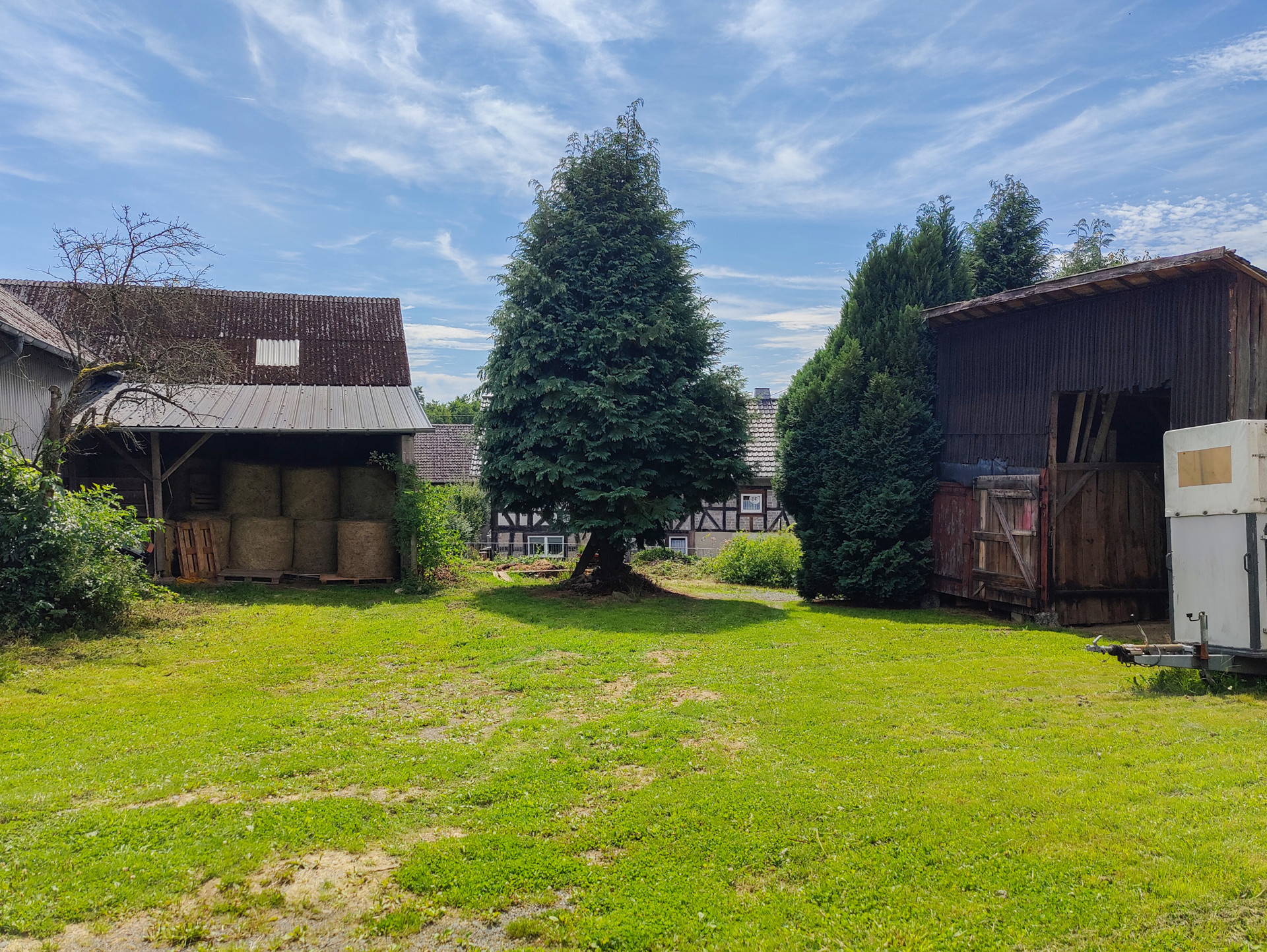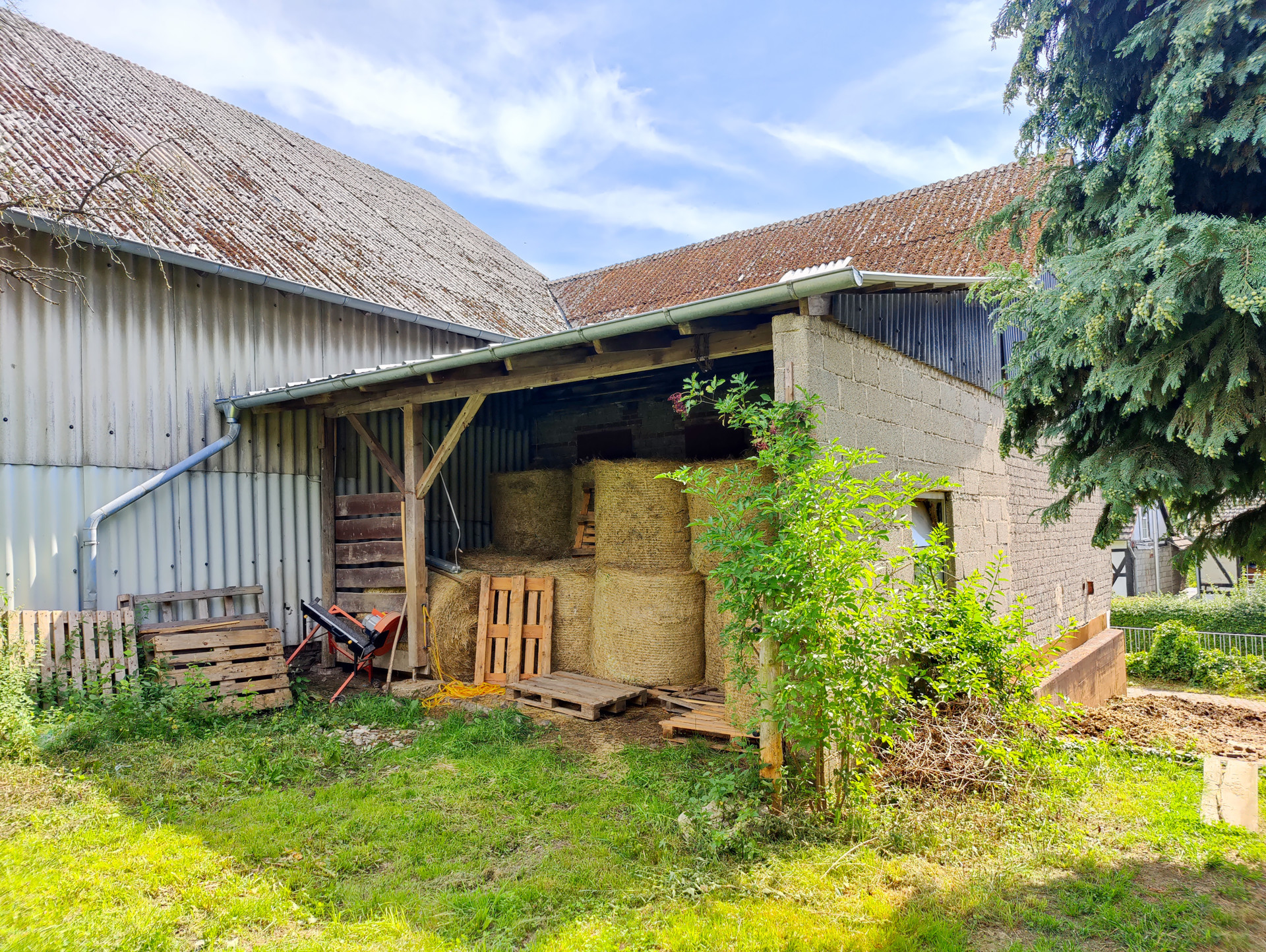 Neben der Scheune befinden sich noch zwei Holzschuppen, die zurzeit als Heulager und Garage für landwirtschaftliche Maschinen dienen.