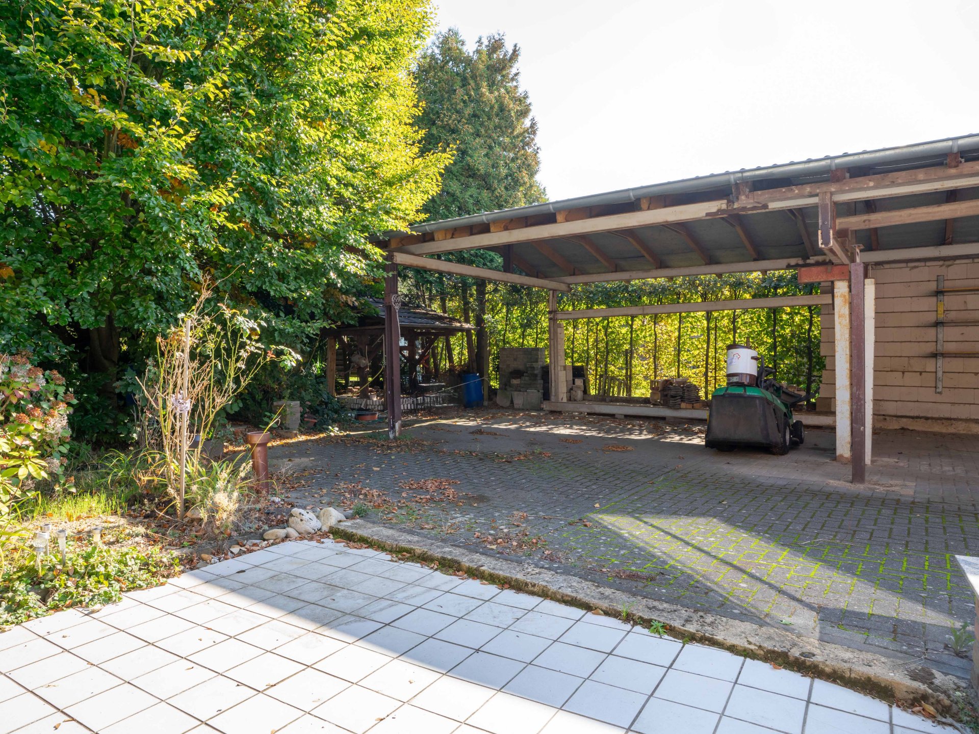 Beide Häuser sind nicht unterkellert und verfügen über gemeinsame Hausanschlüsse. Geheizt wird über zwei separate Gasheizungen. Gewaschen und gelagert wird neben dem Haus in einem separaten Allzweck-Gebäude. Der Garten ist einfach riesig. Davon profitieren nicht nur die diversen Obstbäume…