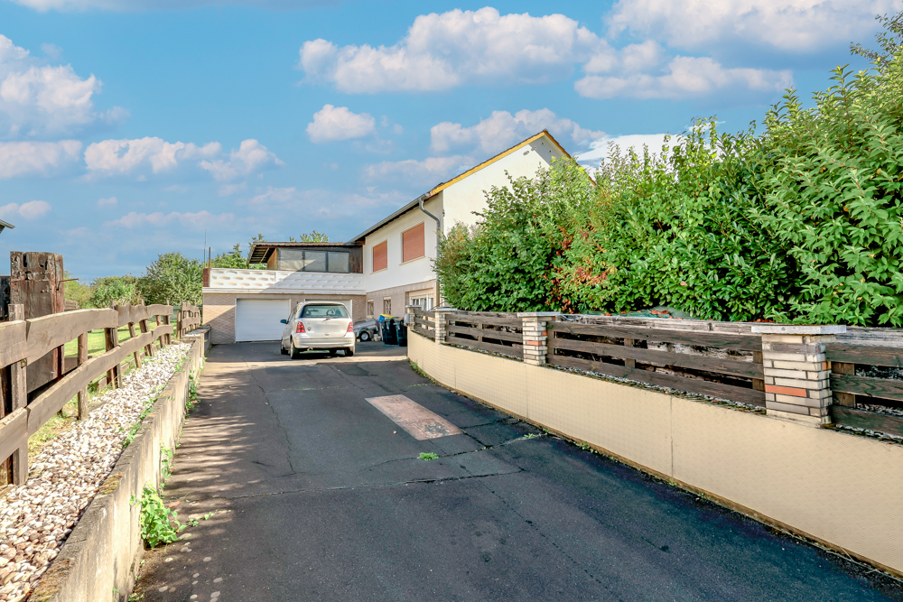 Das großzügige Grundstück bietet viel Platz und Privatsphäre. In der geräumigen Einfahrt können mehrere Fahrzeuge bequem abgestellt werden. Ergänzend dazu steht eine Doppelgarage mit ca. 37 m² Nutzfläche bereit – ideal für Auto- und Motorradliebhaber oder als zusätzlicher Stauraum. -