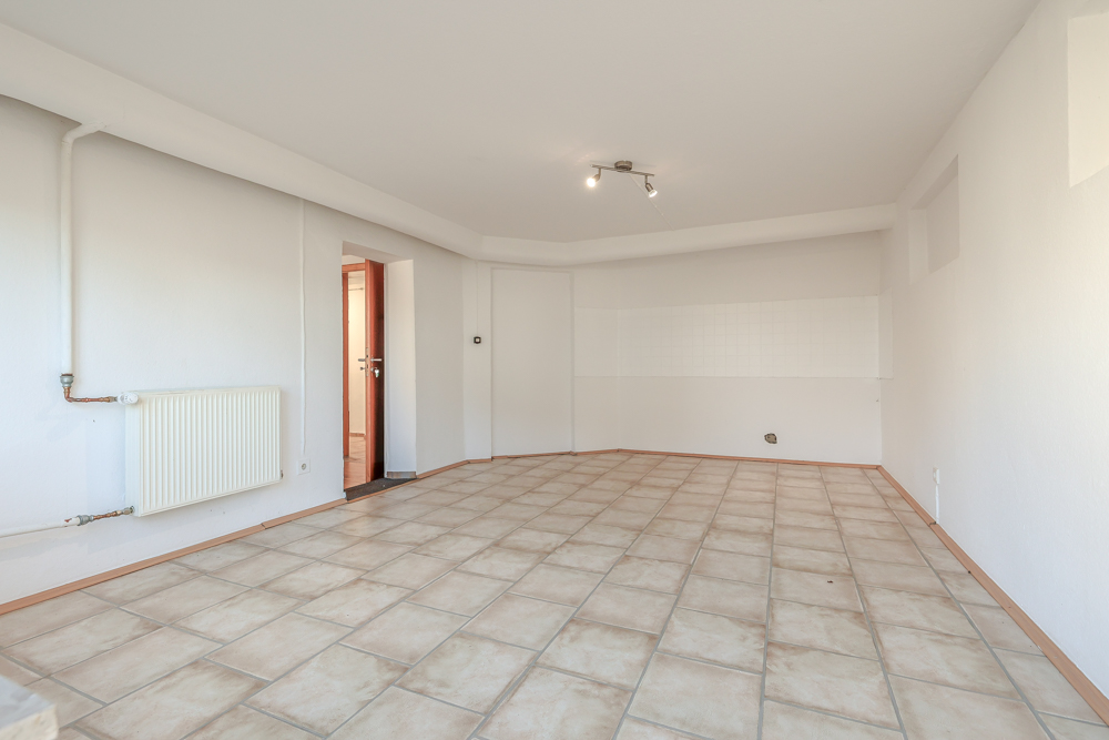Über eine Treppe von der Einfahrt gelangt man in das eigentliche Wohngeschoss. Hier befinden sich eine Küche mit moderner Einbauküche, ein Badezimmer (mit Fenster, Dusche, WC und Waschtisch), ein Wintergarten sowie drei weitere Zimmer, die flexibel als Schlafzimmer, Arbeitszimmer oder Wohnzimmer genutzt werden können.
