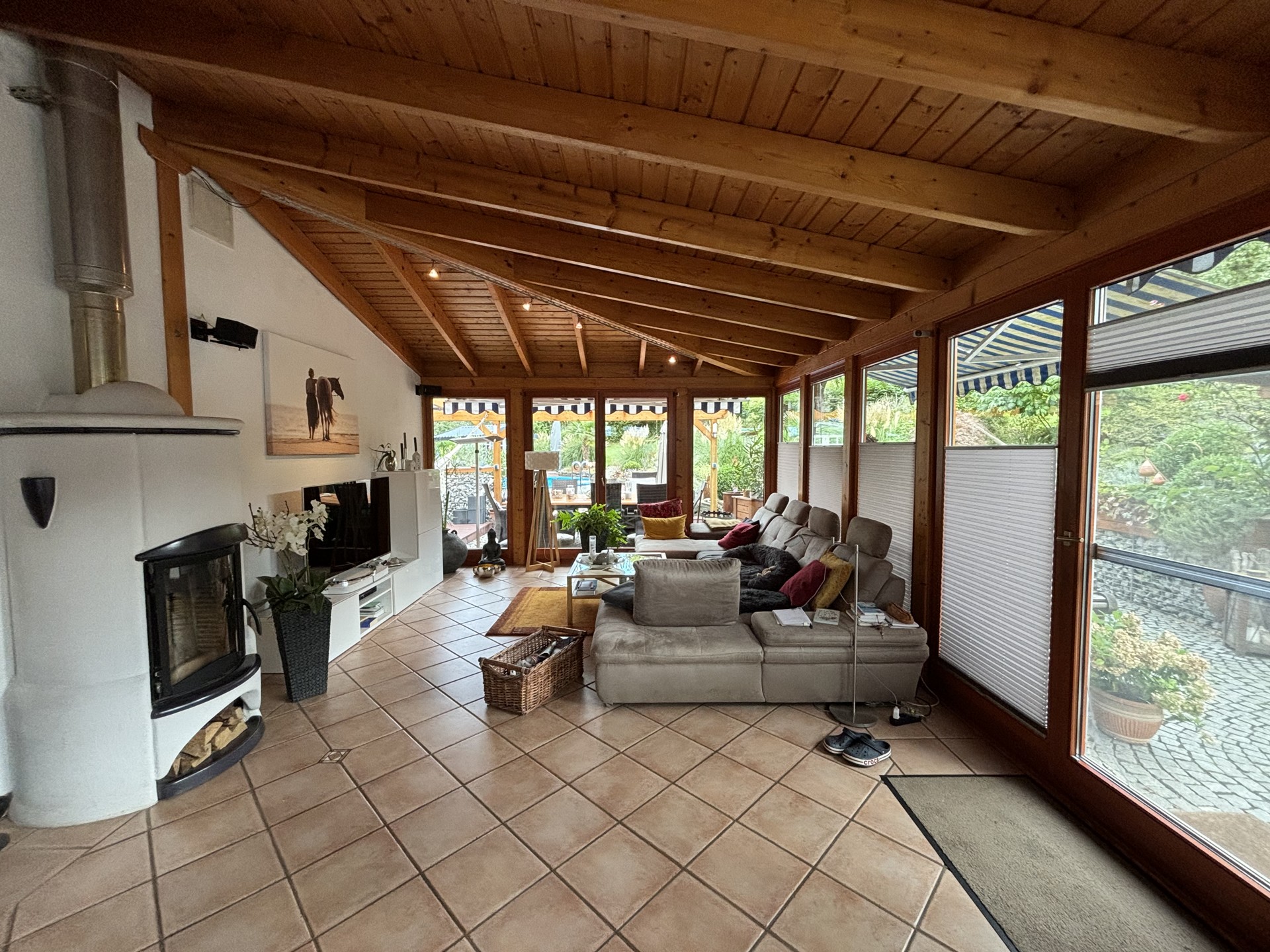 Der großzügig angelegte, uneinsehbare Garten ist eine wahre Oase der Ruhe. Hier trifft stilvolle Gestaltung auf Funktionalität: Ein gepflegter Pool lädt an warmen Sommertagen zum Schwimmen ein, während das charmante Gartenhaus zusätzlichen Stauraum oder einen gemütlichen Rückzugsort bietet. Weite Rasenflächen, gesäumt von üppigen Blumenbeeten und schattenspendenden Bäumen, schaffen ein Ambiente, das zum Verweilen und Entspannen einlädt. Das gegenüberliegende Grundstück mit einer Größe von ca. 283 m² gehört ebenfalls zum Objekt und kann individuell genutzt werden.