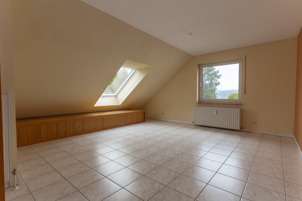 Das Dachatelier besticht durch ihre Großzügigkeit und den schönen Weitblick bis zur Hohensyburg. Hier wird ein neuer Vinylboden in der Farbe Ihrer Wahl verlegt der ideale Raum, um sich individuell zu entfalten, sei es als großzügiges Schlafzimmer, separate, Arbeitsbereich oder kreativer Hobbyraum.