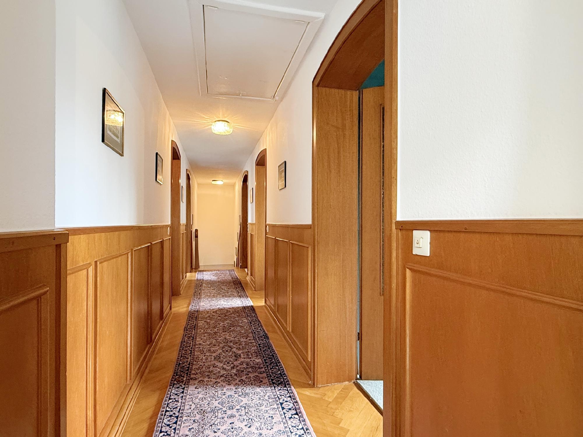 Insgesamt 9 Zimmer, eine Küche, anderthalb Badezimmer und großzügige Verkehrsflächen bieten Platz für ein buntes Familienleben und verteilen sich wie folgt: