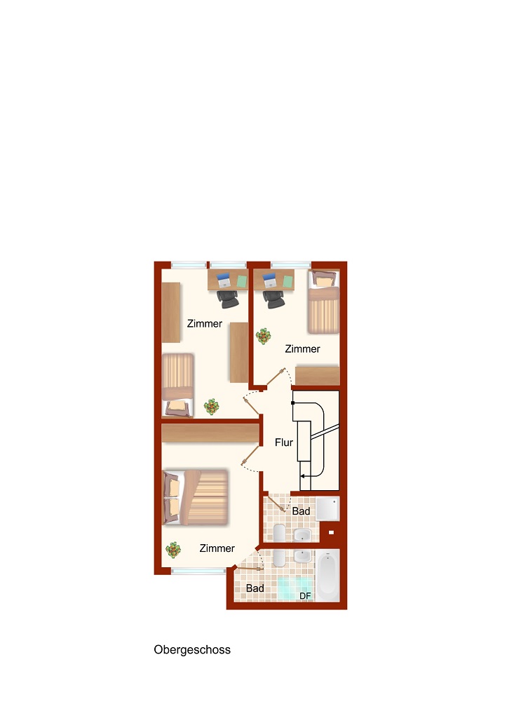 Das Haus war vermietet, Bäder, Fenster, Haustür, Oberböden und Malerarbeiten sollten Sie nach Ihrem Geschmack einbringen – wir schätzen die Kosten auf gut 60.000 EUR. Eine Garage gehört zum Angebot.