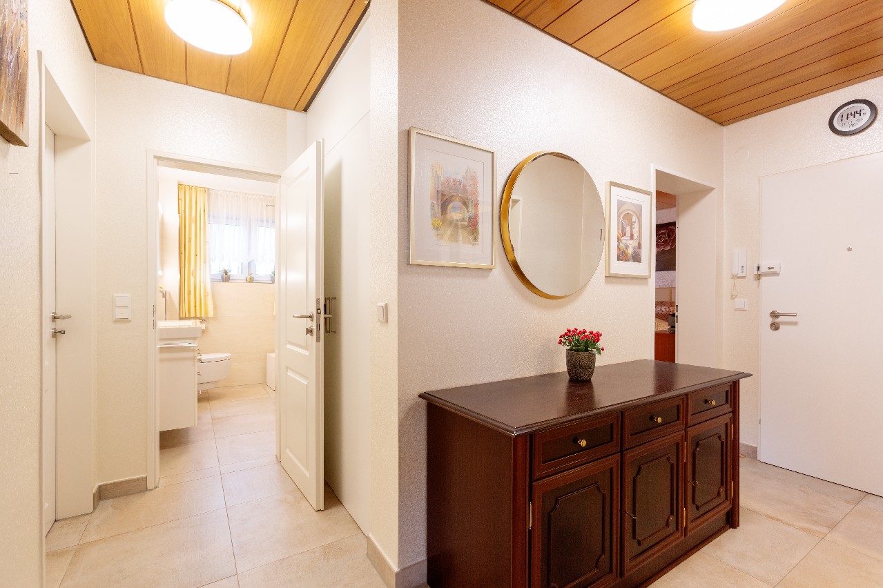 Die beiden hellen beheizbaren Räume, die sich hervorragend für Ihre Hobbys bzw. Unterbringung Ihrer Gäste eignen, werden Sie auch begeistern. Ein großes WC mit Handwaschbecken und Fenster ist hier ebenfalls vorhanden. Die Böden bestehen auch hier aus großformatigen hellen Fliesen. Dieser Bereich stellt keine offizielle Wohnfläche im klassischen Sinne dar. Dennoch ist der Ausbau sehr gelungen und schafft eine wohnliche Atmosphäre, die an die Wohnung im Erdgeschoss heranreicht.