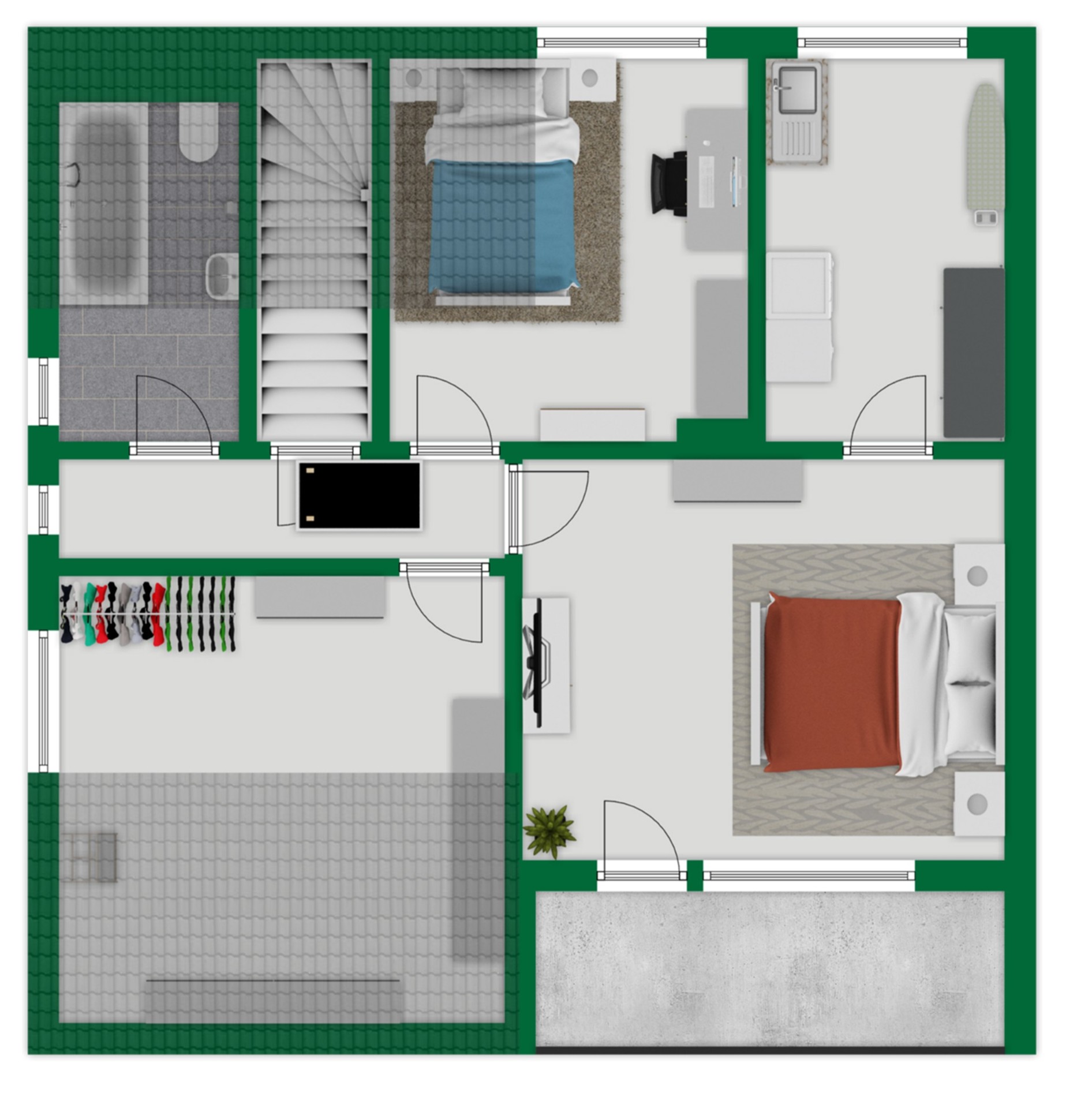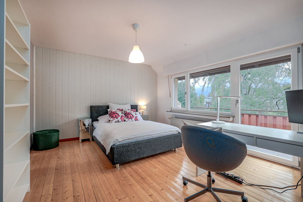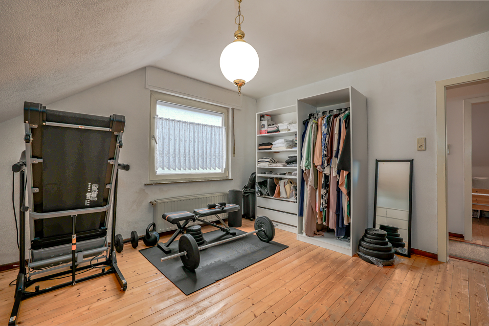 Im Obergeschoss befindet sich ein großes Schlafzimmer mit direktem Zugang zu einem weiteren Balkon. Ein kleineres Zimmer, derzeit als Küche genutzt, kann flexibel umgestaltet werden. Zwei weitere Zimmer sowie ein vollwertiges Badezimmer komplettieren diese Ebene.Das Untergeschoss bietet vielseitige Möglichkeiten und ergänzt die Wohnfläche um praktische und flexibel nutzbare Räume. Über einen separaten Eingang erreichbar, stehen hier zwei großzügige Hobbyräume und ein Badezimmer mit einer Gesamtfläche von 35 m² zur Verfügung. Auch Küchenanschlüsse sind gegeben. Diese Räume eignen sich ideal als Werkstatt, Fitnessraum, Lagerfläche oder für kreative Hobbys. Aktuell ist dieser Bereich nicht zu Wohnzwecken genehmigt, weshalb sich die 121,28 m² Wohnfläche lediglich auf das Erd- und Obergeschoss beziehen.