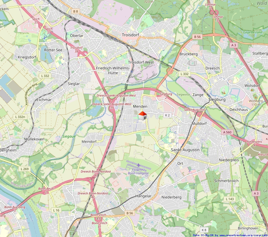 • Die Wohnung in der Siegstraße 95b befindet sich im südlichen Teil von Menden in Sankt Augustin und ist von Feldern sowie kleineren Waldflächen umgeben. Die Umgebung zeichnet sich durch eine ruhige Wohnlage mit Spazierwegen und Möglichkeiten zur Freizeitgestaltung im Grünen aus.